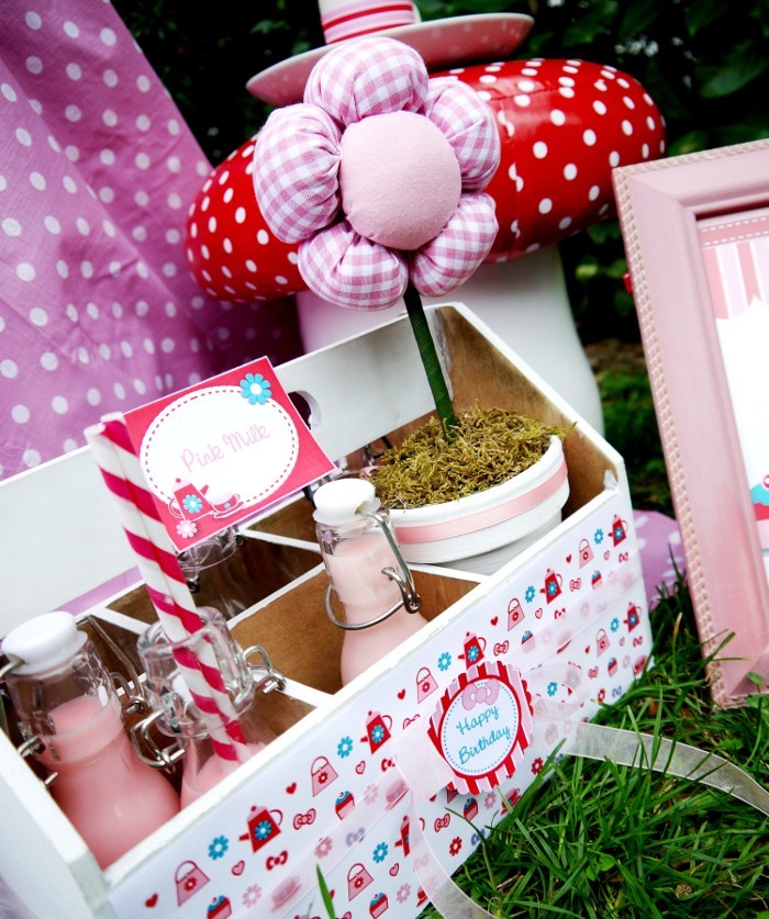 I also like to give my own twist to popular or conventional party themes, and in this case I designed the party collection around a sweet, Tea Shoppe - Complete with pink milk off course! :)